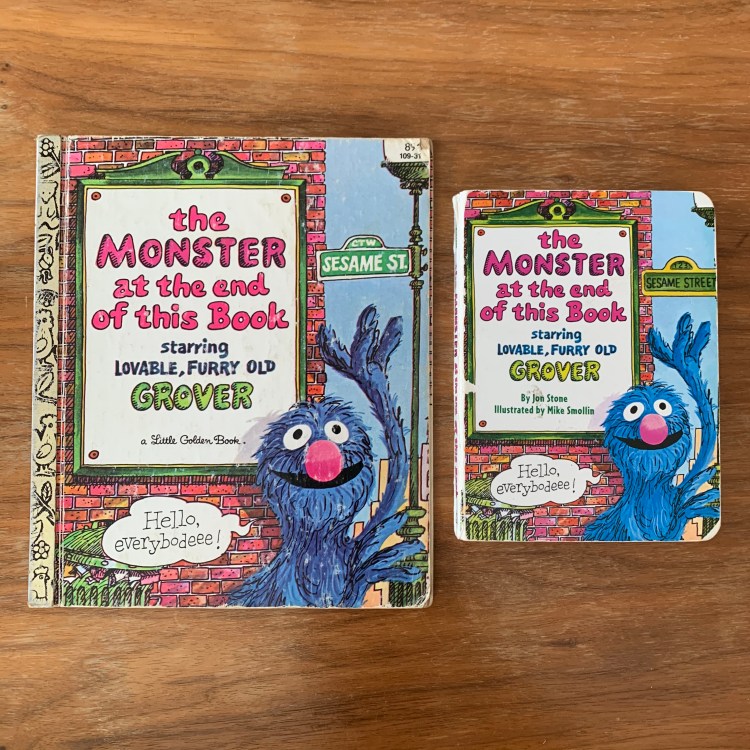 Eid Mubarak to all! On this day of celebration, with Ramadan having drawn to a close, I wanted to share with you a book that digs deeply into my past. Of all the books that I’ve shared, none goes as far back in my life as this one: “The Monster at the End of This Book” starring lovable, furry old Grover (as indicated), written by Jon Stone, and illustrated by Mike Smollin. This unassuming work is one of my most favorite books from my childhood. How can such a humble tome do so much thought-provoking and heart-quaking work? Smollin’s art is exquisite, from the fine line drawing to the superbly matched coloration. Each page conveys remarkable movement and immovability at the same time. Grover himself – no amateur to the written page – delivers a memorable, fourth-wall breaking performance, which for me was a minor revolution back then — Grover is speaking to me! And thanks to Stone’s expertise in the craft, the plot takes a most unexpected turn, reminiscent of other mindbenders like the Christopher Nolan’s film “Memento” or Alan Moore’s graphic novel “V for Vendetta.” Of course, I dare not spoil the plot for you, but rest assured, this is a work of genius. My little mind was blown away when I first read it and I feel strongly that its imaginativeness had much to do with making me the person who I am today. And even when I reread it now, with my daughter Maryam, I still find myself picking up the pieces of my shattered mind to slowly piece it back together in the quietness that abides after. I have two editions of this book as well (of course!). On the left is my original copy, a 22nd printing from 1982 in the famous Little Golden Book series. It was so well loved that the back cover has become detached. On the right is a 1999 Random House board book copy that we bought used for Maryam when she was still of the most wee stature. Whatever your age, seek this book out and behold its wonders! Eid al-Fitr 1441/2020