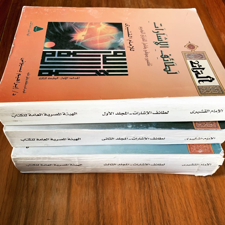Many years ago, I carried these three volumes back with me from Jordan, I believe. I recall it was quite the find the time because I had just resolved to make the Qur’an commentary of Abu al-Qasim al-Qushayri (d. 465/1072), his Lata’if al-isharat (“The Subtleties of the Signs”), the subject of my dissertation and this was the edition produced by Ibrahim Basyuni. I had learned by then that Basyuni’s edition was the only real edition worth consulting and I was looking for my own print copy to work with rather than the library’s or a digital one. All the other editions that I had checked were nothing more than blatant copies of Basyuni’s work, all of which failed to acknowledge that unsurprisingly. Still, Basyuni’s edition is far from ideal since it is based on only two partial and problematic manuscripts. Of course, I eventually obtained and made use of far better manuscripts, but having a print copy in front of me still proved helpful. I ended up using these three volumes quite a bit for nearly a decade until the book finally appeared. While I have not checked recently (since I’ve moved on from Qushayri), I don’t believe a new edition of the Lata’if has ever been prepared. Still, I owe quite a bit to Basyuni for being the first to edit the commentary along with several other important works by Qushayri. Ramadan 26, the first